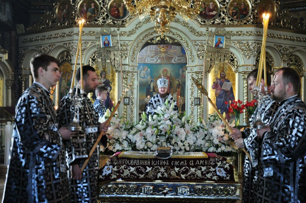 26 квітня, у Велику П’ятницю, у Хрестовоздвиженському храмі м.Києва вікарій Київської Митрополії архієпископ Боярський Феодосій звершив уставне богослужіння з виносом Плащаниці Спасителя і читанням Канону про розп’яття Господнє і на плач Пресвятої Богородиці. Його Високопреосвященству співслужило духовенство храму.
